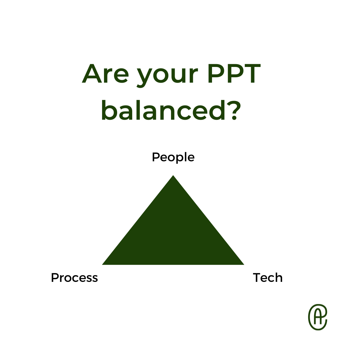 The people, process, technology (PPT) methodology states that within any organisation, you need to pay attention to these three components and their interplay.